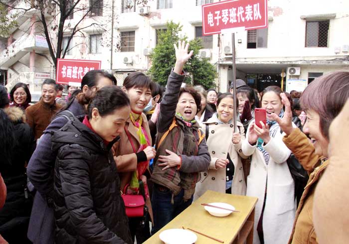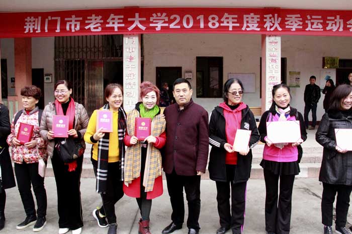 11月8日上午,荆门市老年大学2018年度秋季运动会在市老干部局机关大院举行。本届运动会设投筷进篓、夹豌豆、传球比赛、赶猪出笼、全员摸奖5个项目,共有27个班级22支代表队参赛,290名运动员同场竞技。福寿居分校组织了38名学员参加本次运动会,其中运动员18名,拉拉队20名。