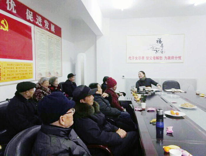2017年元月4日下午3点,银龄志愿服务队20多位队员齐聚一堂,在小会议室举行年终茶话会。老年大学福寿居分校的李校长主持会议,福寿居严经理出席会议并讲话。