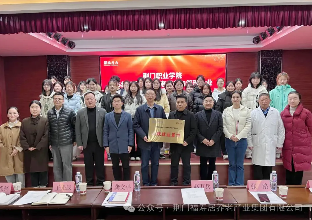 12月3日下午,荆门职业学院25级智慧健康养老服务与管理专业“福寿居订单班”开班仪式,在荆门福寿居养老产业集团有限公司隆重举行。此次仪式为深化产教融合、精准对接养老产业人才需求而设,受到校企双方高度重视,荆门职业学院副院长龚文平、教务处主任李亚林等校方领导,福寿居养老产业集团董事长赵万兵、副总张路等企业领