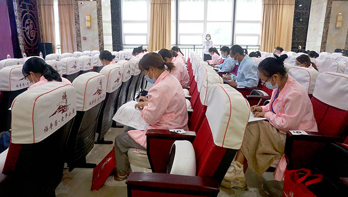 本次选拔赛分理论和实操竞赛两个部分,理论考场,选手们沉着冷静,认真答题。实操竞赛分为生活照护、基础照护、康复服务三个项目,选手们分别在各项目组抽签进行技能展示,裁判组现场进行专业考评打分,通过紧张激烈地角逐,最终评选出一等奖一名,二等奖三名,三等奖五名。