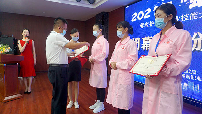 市民政局副局长秦文、市人社局副局长方永旭出席开幕式、闭幕式及颁奖典礼,市人社局职业能力建设科科长罗海燕、市职业技能鉴定中心主任周传华、福寿居养老产业集团董事长赵万兵、总经理赵雪芹、养老社区院长张路、培训学校校长李云飞等参加活动。