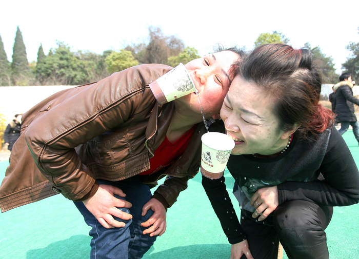 第一项踩报纸,每组都在热烈的探讨如何每个人都能站稳,裁判一声哨响,各就各位,每人迅速站好,两轮下来,有的犯规,有的站不稳都倒地上了,已有三组败下阵来,最后三组决一胜负,最后的报纸实在太小,几秒钟冠军就产生了。第二项运气球,两人背对背夹着气球跑向终点,要来回5趟,各个队伍大显身手,比赛非常的激烈,旁边的爷爷奶奶们看的都乐的合不拢嘴,男同胞们也在一旁为活动加油打气,比赛现场加油声呐喊声此起彼伏,气氛相当热烈。第三项是比划猜游戏,此项游戏考验选手的默契度,观众和参赛的选手一起开动脑筋,心急如焚,都快把答案说出来了。第四项是衔纸杯传水,此游戏更考验技巧性,需要体力和脑力的结合,有的水都倒脸上了,有的倒地上了,看得旁边的观众们哈哈大笑。